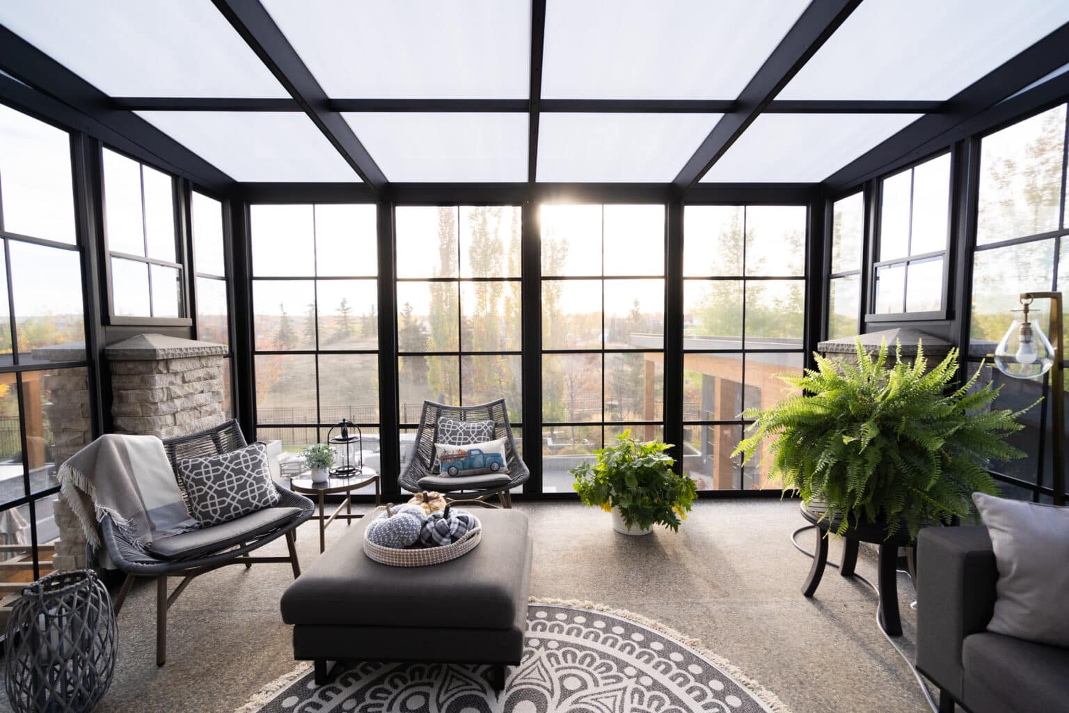 La véranda 3 saisons de Suncoast offre une flexibilité inégalée. Dotée de fenêtres coulissantes verticales en vinyle, elle passe rapidement d’un espace d’été ouvert et aéré à une pièce entièrement fermée et résistante aux intempéries en quelques minutes. Cette adaptabilité vous permet de profiter confortablement du plein air tout au long de l’année.