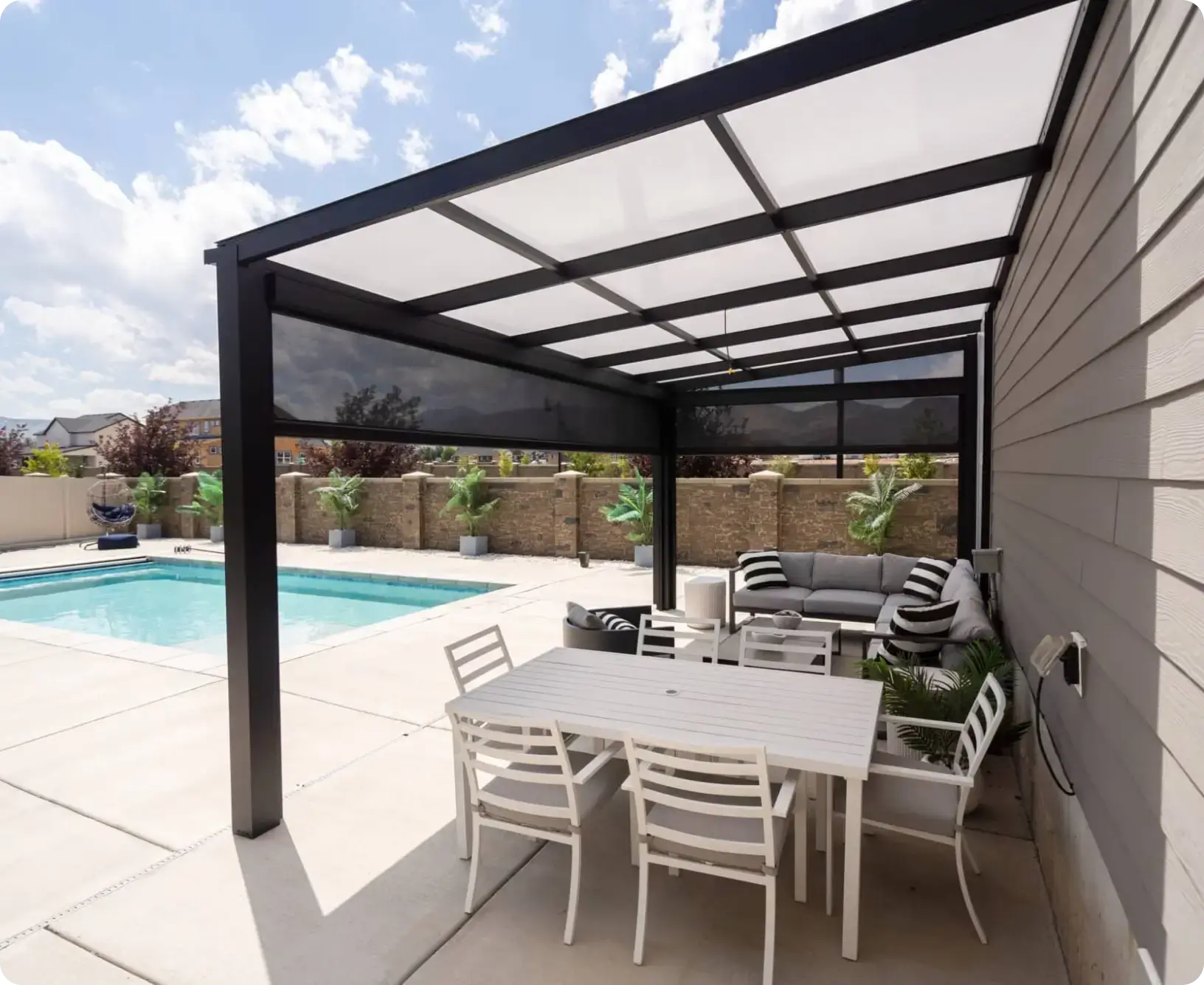 Elevate your patio with the convenience of retractable power screens – offering privacy, protection, and versatility at the touch of a button.