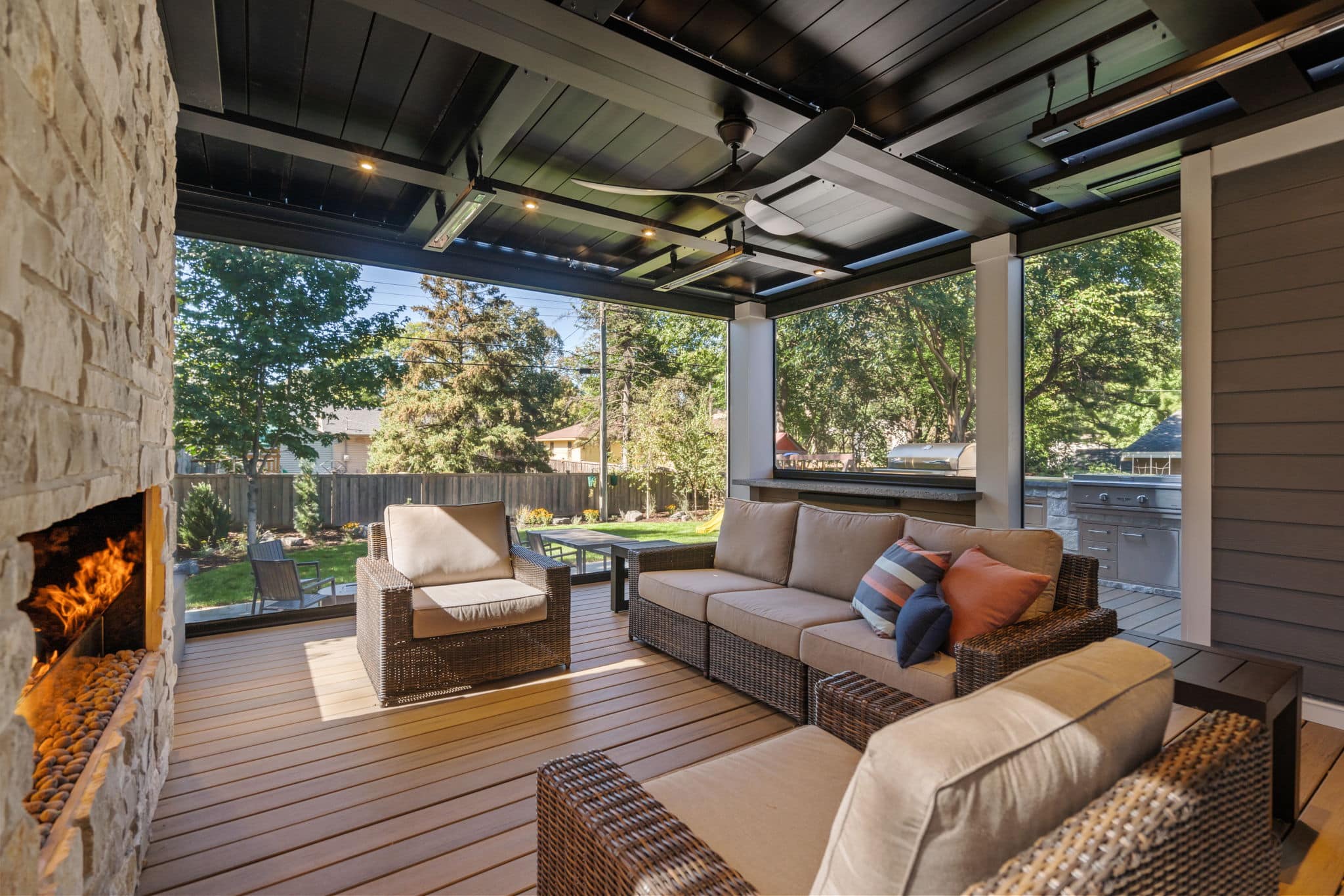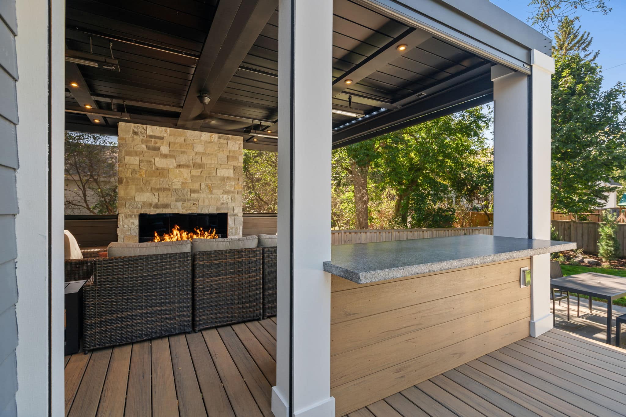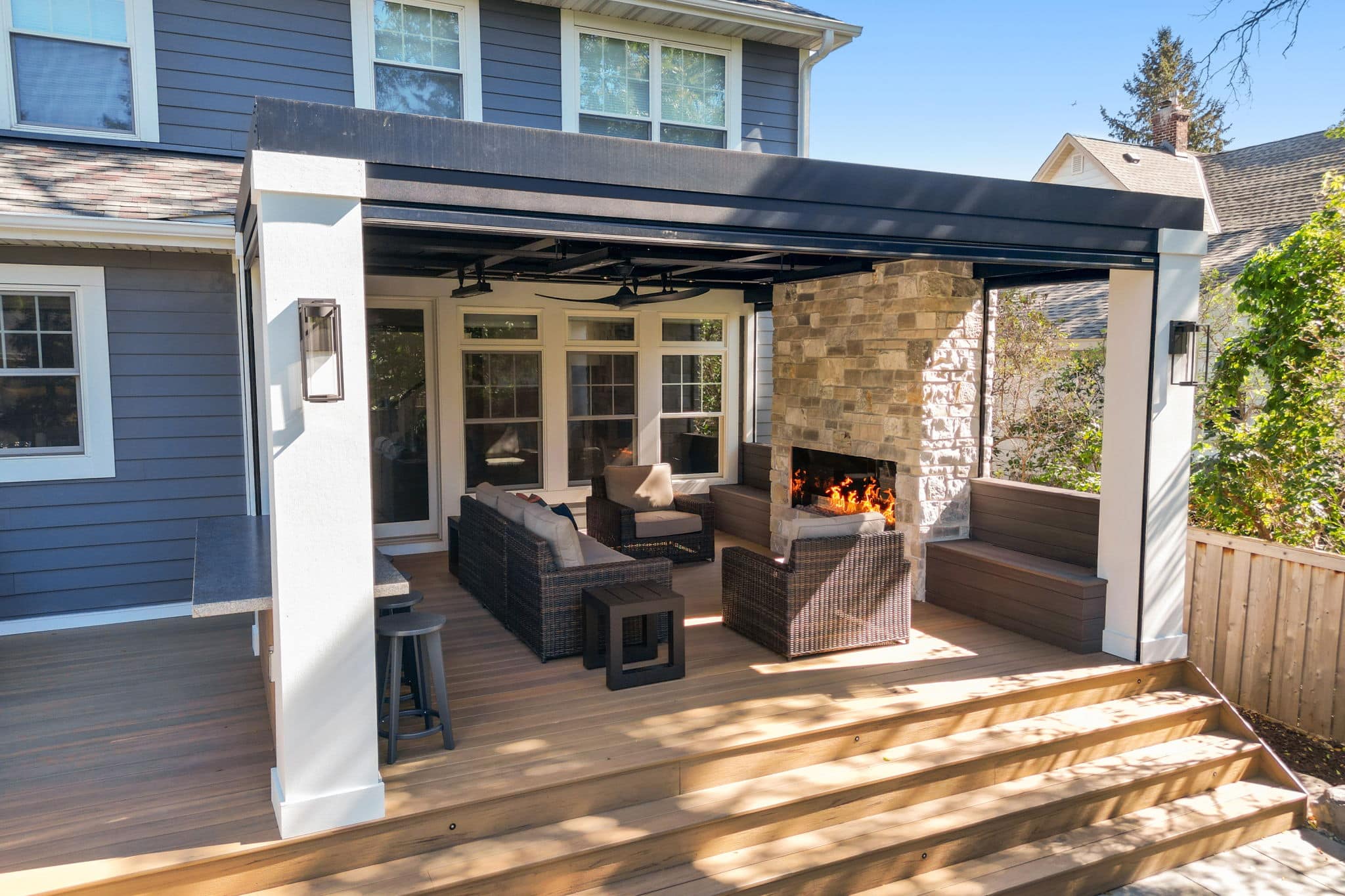 Louvered Roof with Retractable Power Screens