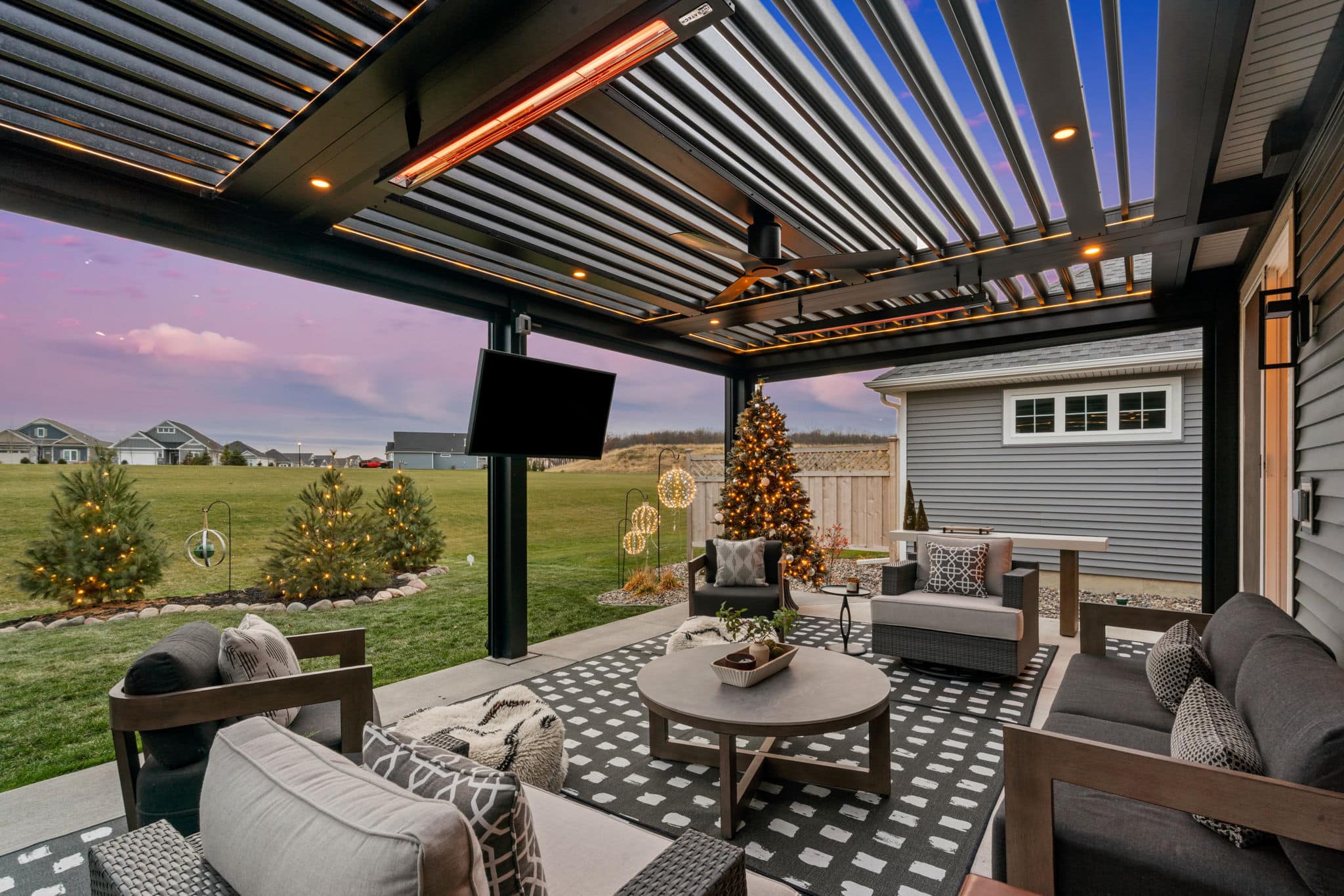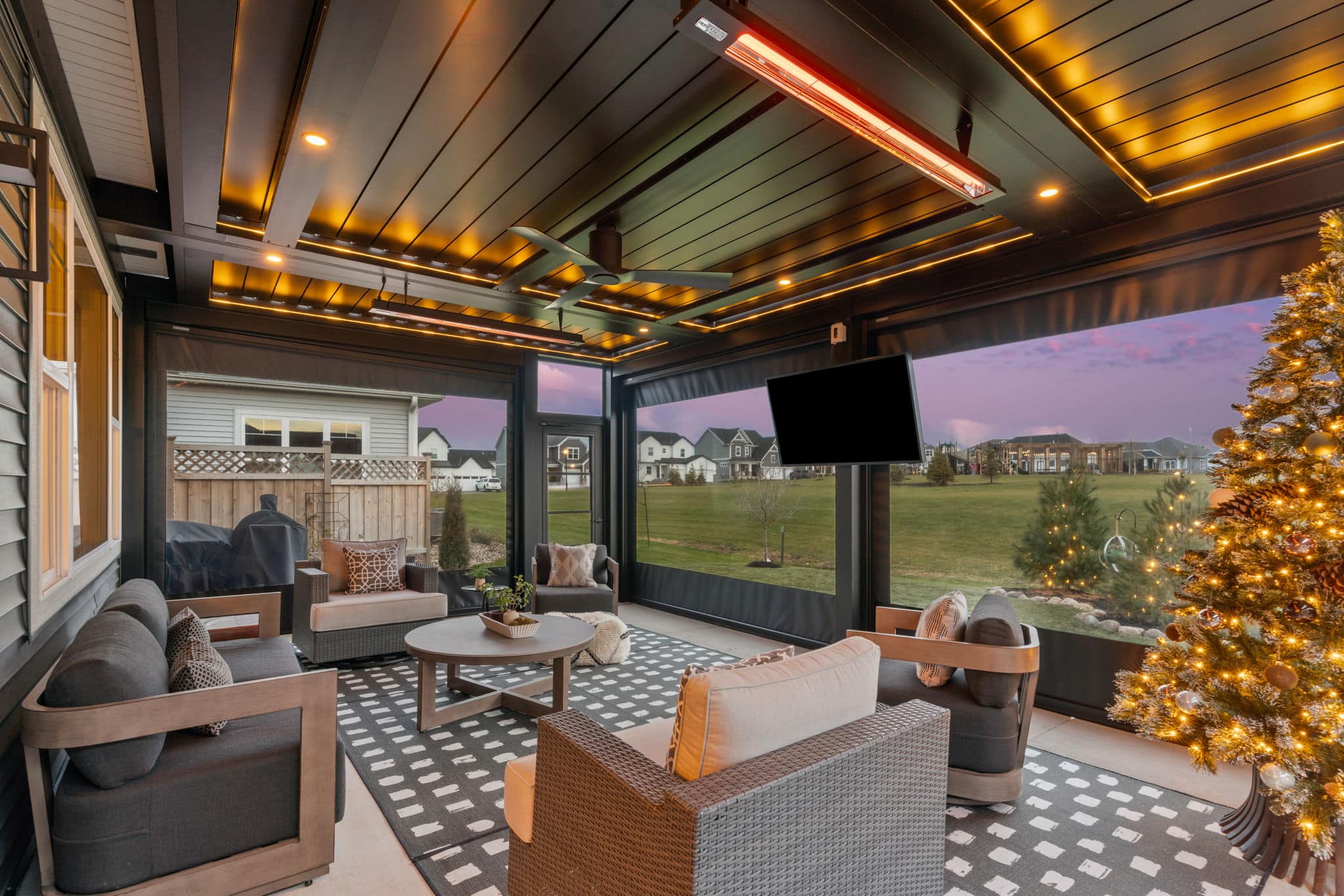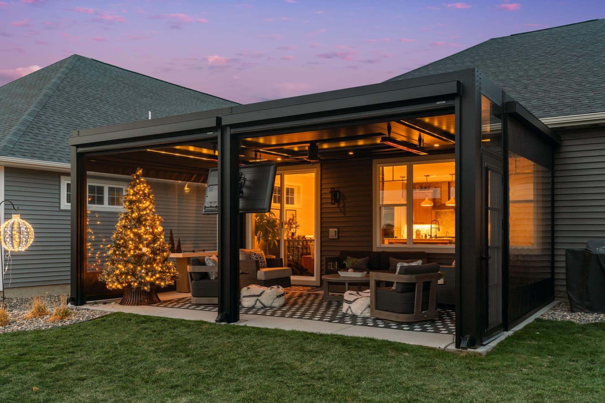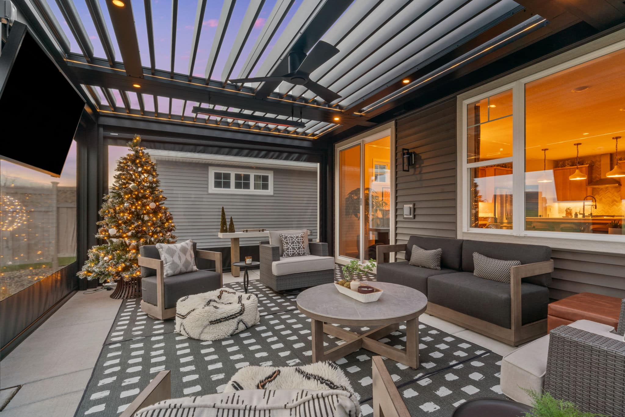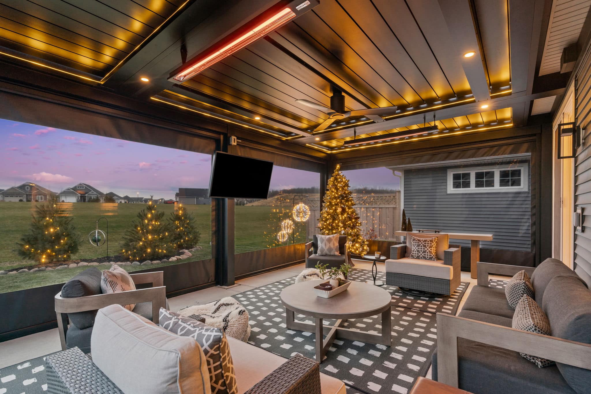 Louvered Roof with Retractable Power Screens