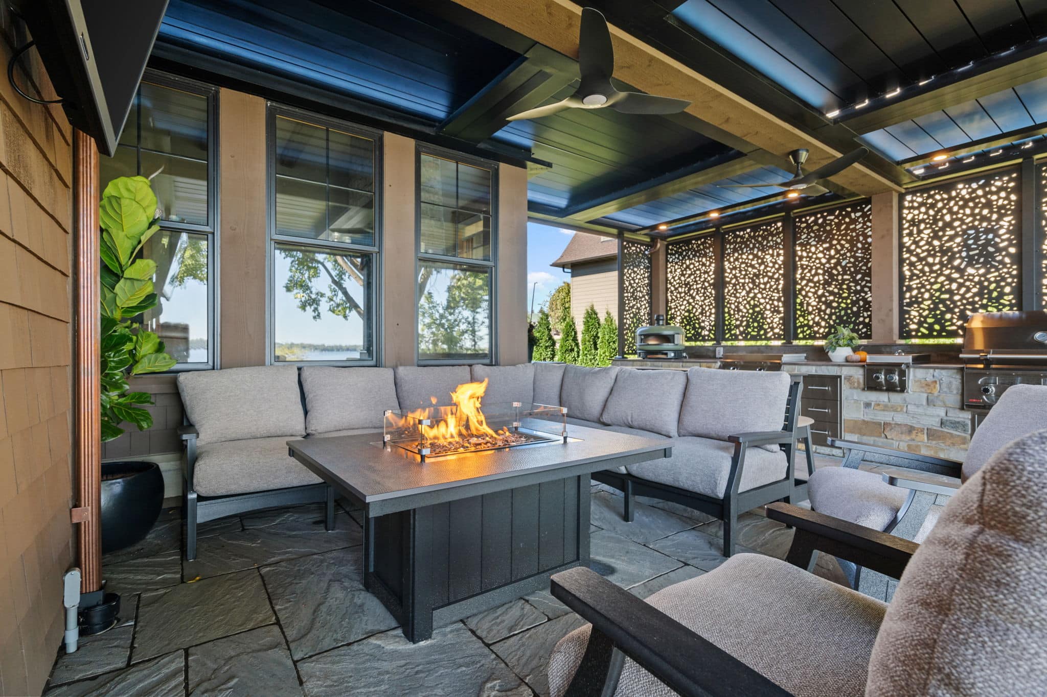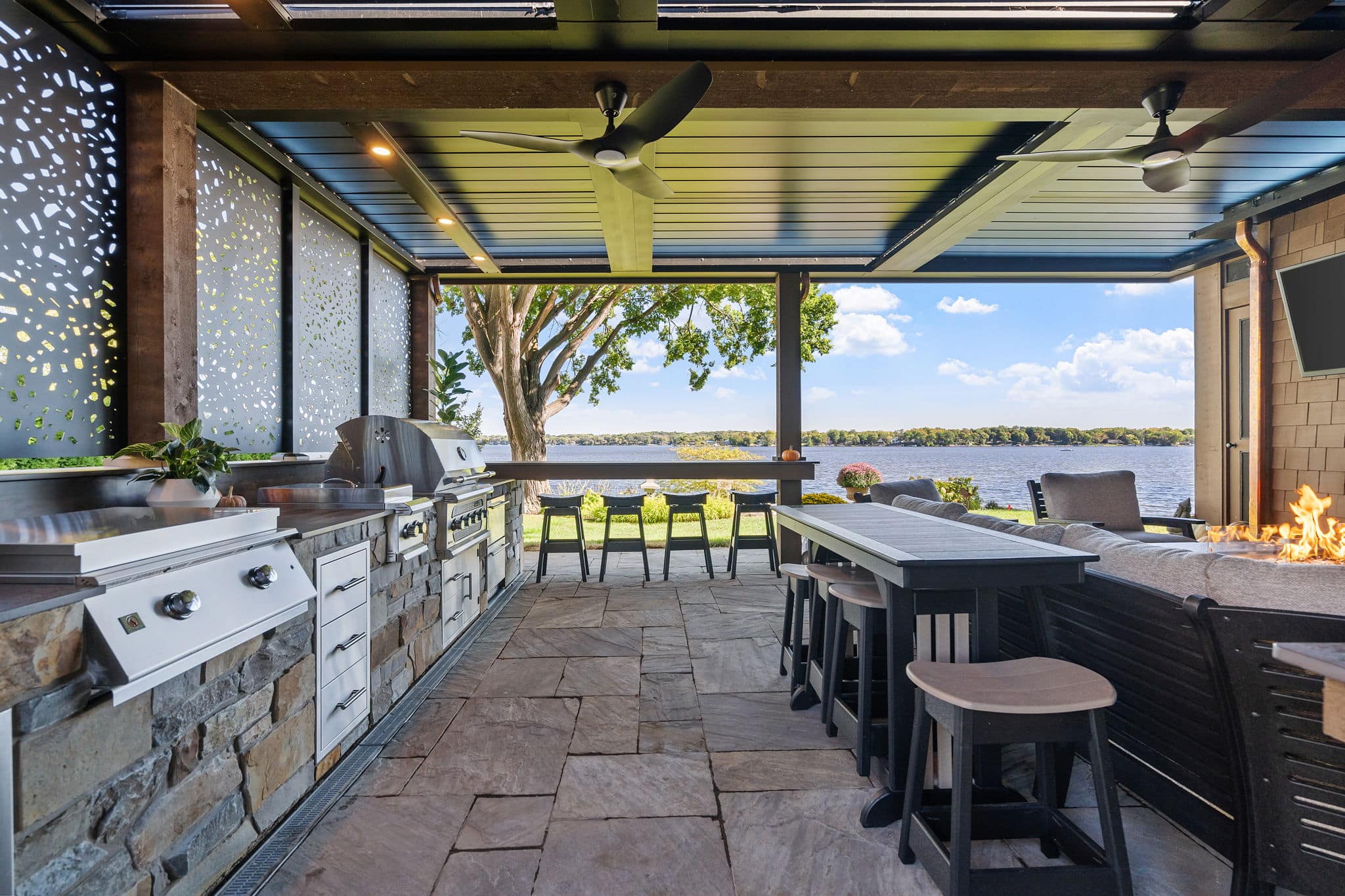 Louvered Roof with Retractable Power Screens