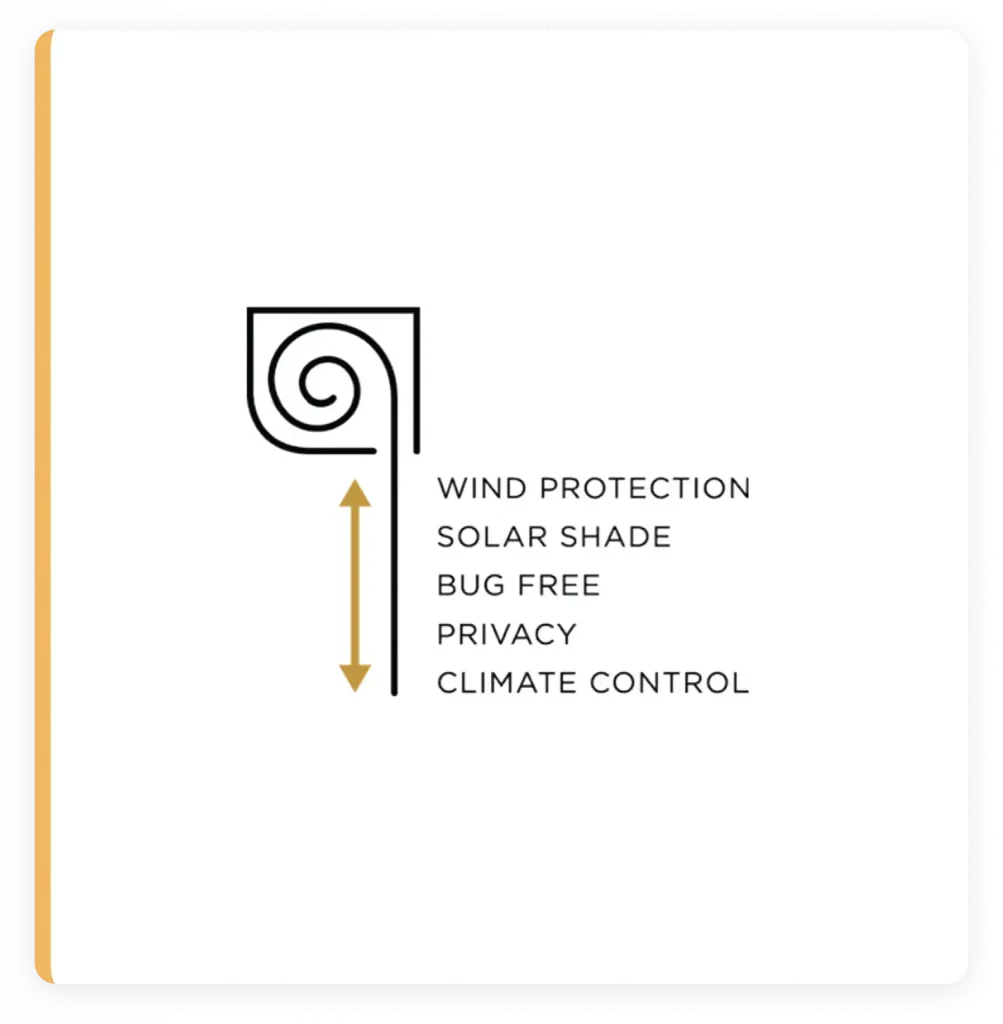 Absolutely! Our retractable screens offer comprehensive protection tailored to your specific environment. Whether it’s the sun’s glare, strong winds, bothersome bugs, rain, or even snow, our custom-fit screens are designed to handle it all. You can fine-tune the degree of wind and weather protection by choosing from a range of mesh densities, spanning 60-95%. Mesh density can be coupled with additional vinyl options. Rest assured, your space will be shielded against the elements, providing the desired level of comfort and protection.